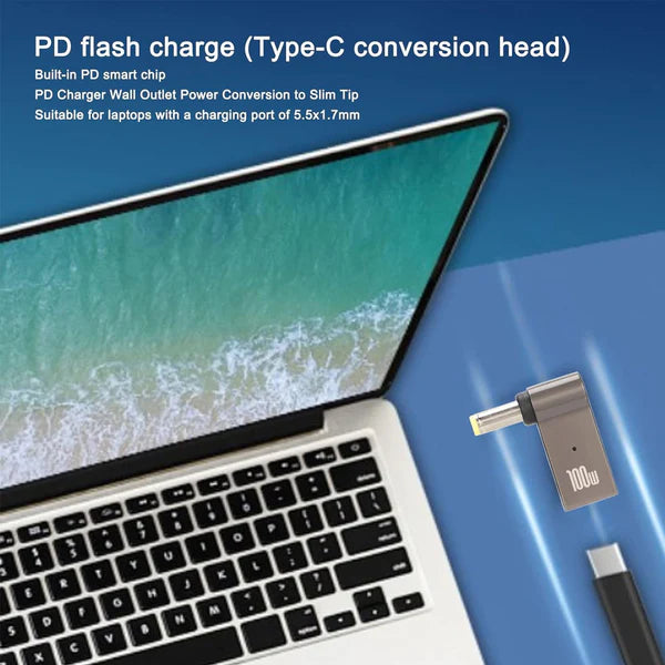 100W POWER DELIVERY WITH LENOVO SQUARE CONNECTOR: Supports up to 100W for fast charging, making it highly practical. Designed to use a Type‑C PD charger to power laptop devices, this USB Type‑C to DC male plug converter adapter allows you to connect your laptop to a PD charger.
